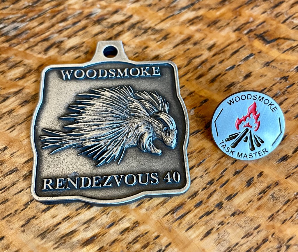 The smaller medallion will be awarded only to those Scouts who team up to satisfactorily complete all twelve Woodsmoke challenge tasks, thereby becoming a “Woodsmoke Taskmaster”.